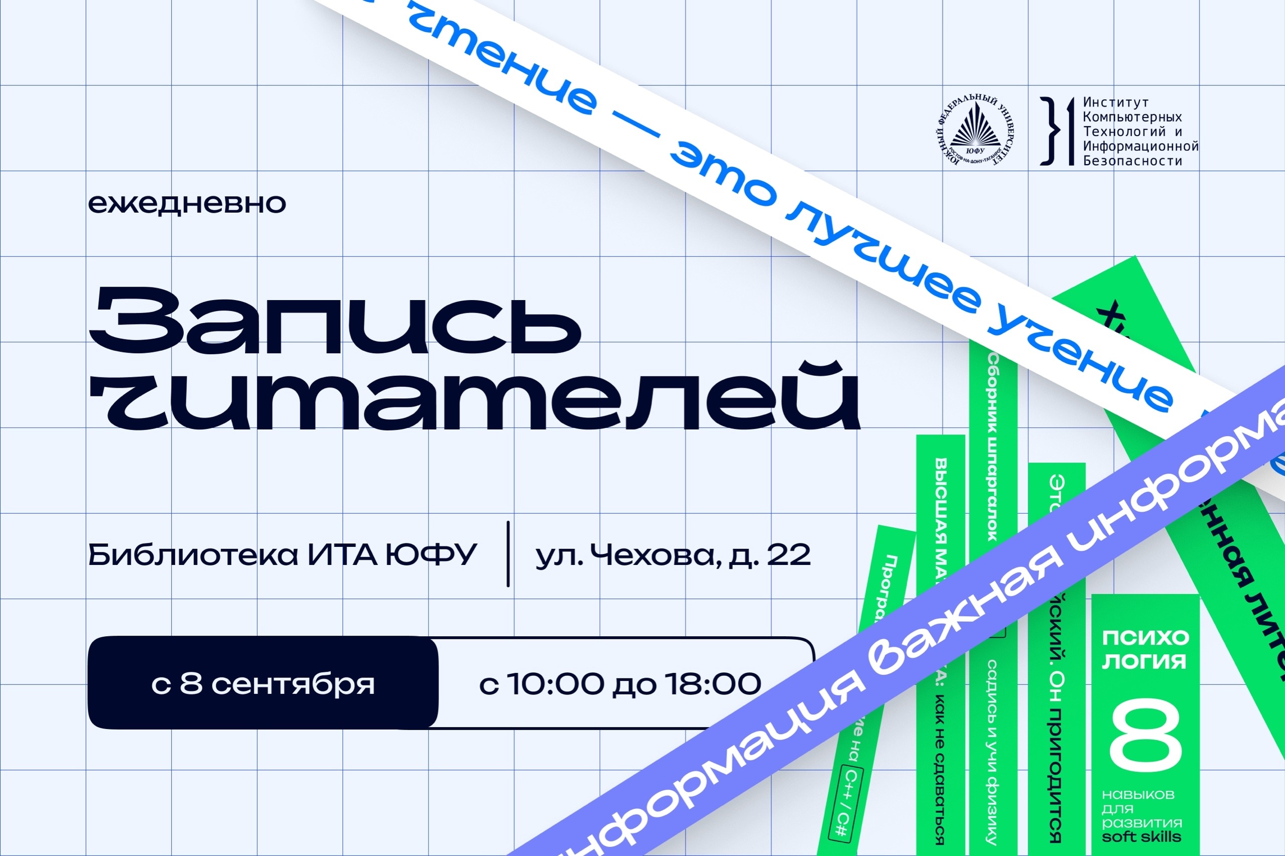 С 8 сентября Библиотека ИТА ЮФУ проводит запись читателей!